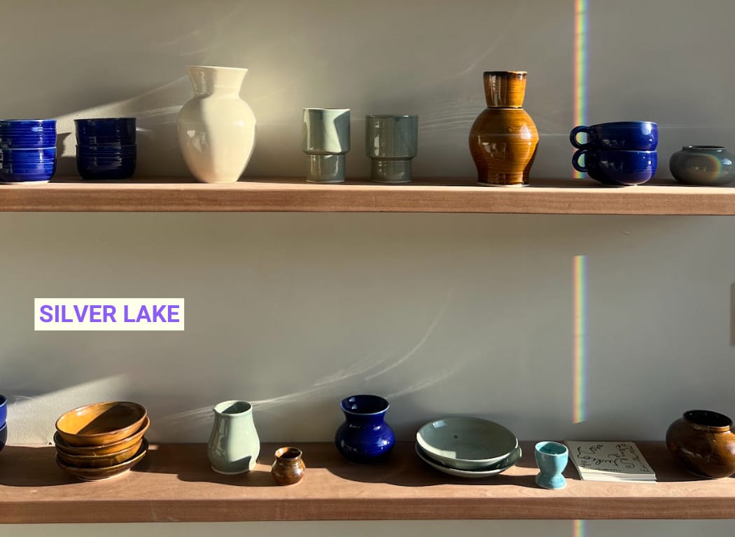 - SILVER LAKE BIZ: Karina Black's ceramics studio, COSA, in Silver Lake offers open studio hours with slab rollers, classes for all skill levels, and handmade pieces next to Good Friend coffee and Courage Bagels. Custom orders close November 11th for holiday delivery, work that's collaborated with Summer Fridays and For Love and Lemons now available to browse or make yourself.